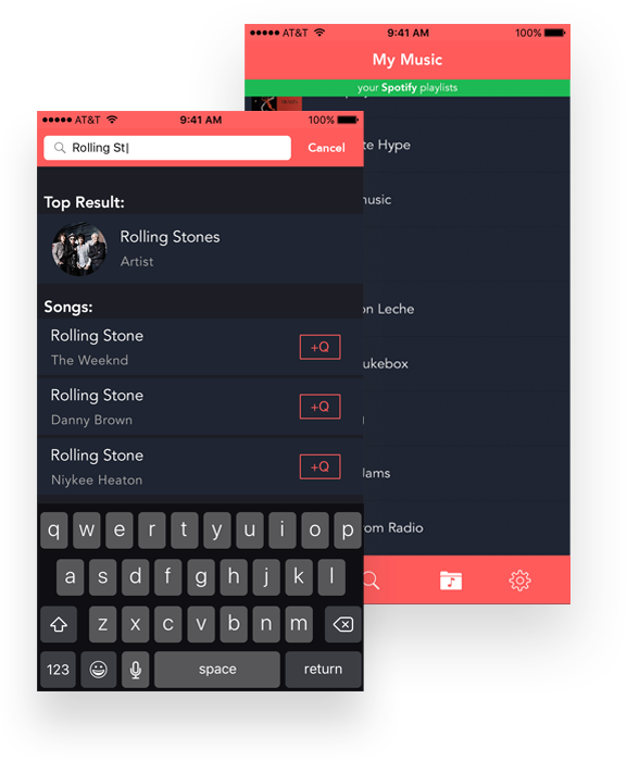 Everyone has an equal say, and this little democracy allows anyone to search and queue their favorite tracks. Choose from your Spotify playlists, or use our search engine to find that song stuck in your head.